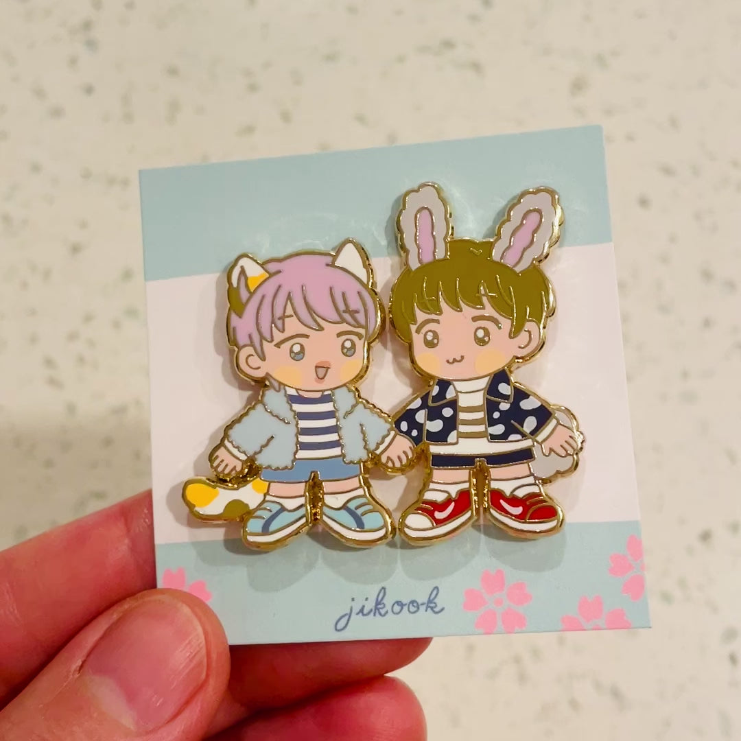 Jimin & Jungkook Spring Day enamel pin, with gold plating. Approx. 1.5" tall