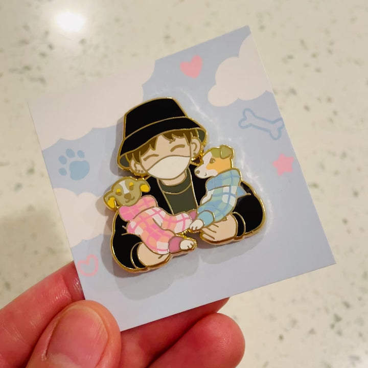 Jungkook & puppies enamel pin, with gold plating. Approx. 1.5" tall