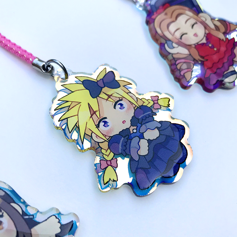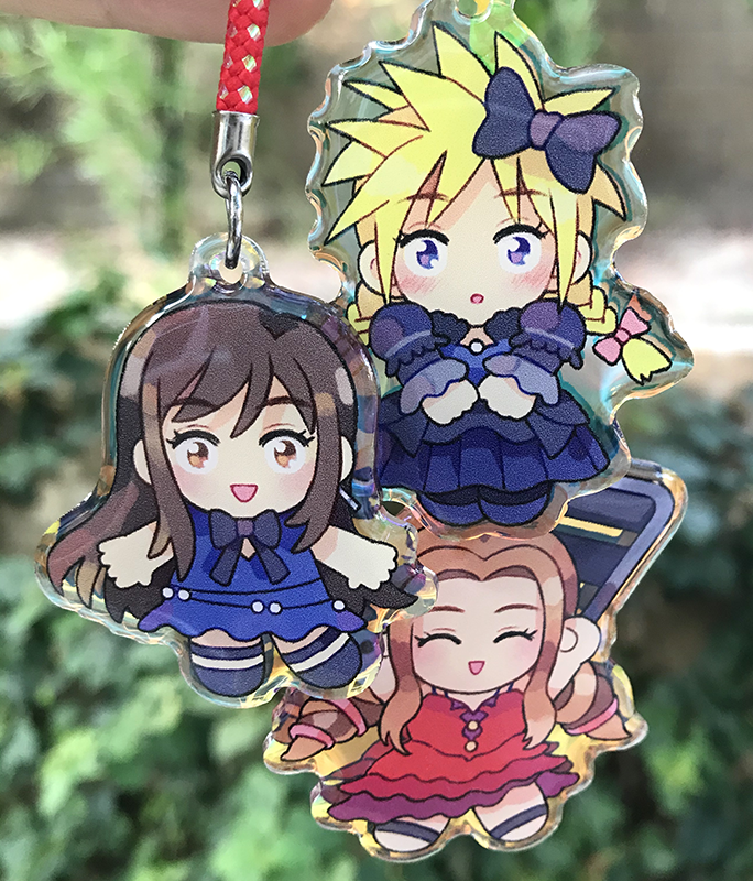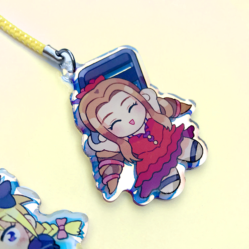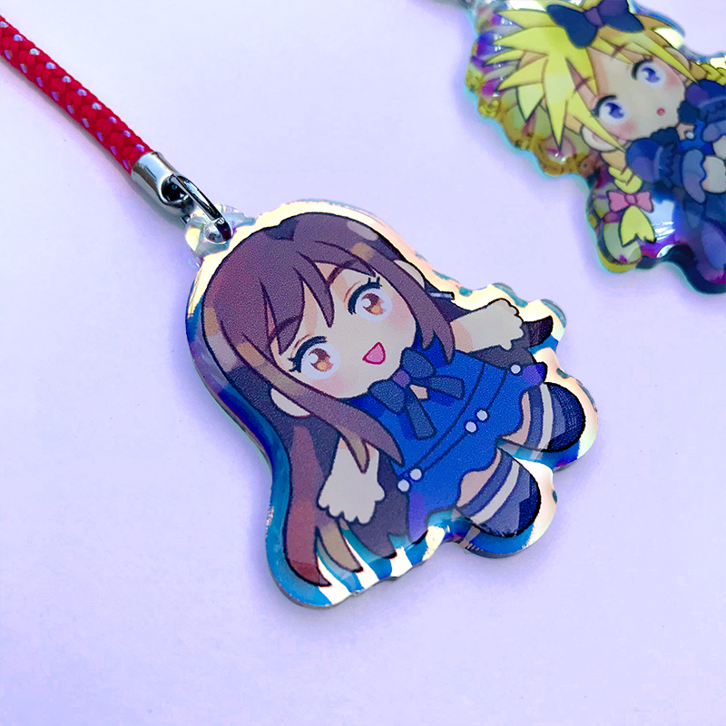 Adorable small charms of the trio dressed up, printed on shiny rainbow acrylic, approx. 2" (5cm) tall