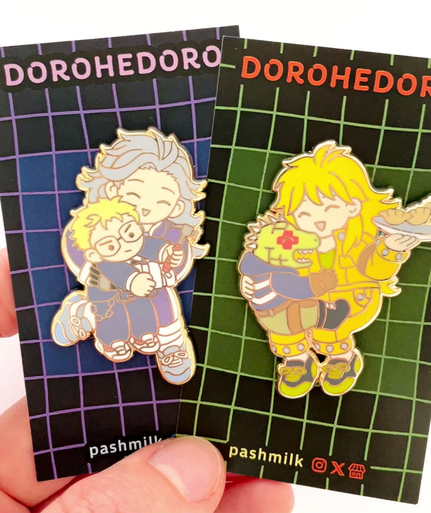 Sorcerer companions enamel pins, 2" tall d gold plating and two rubber backings.