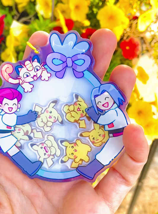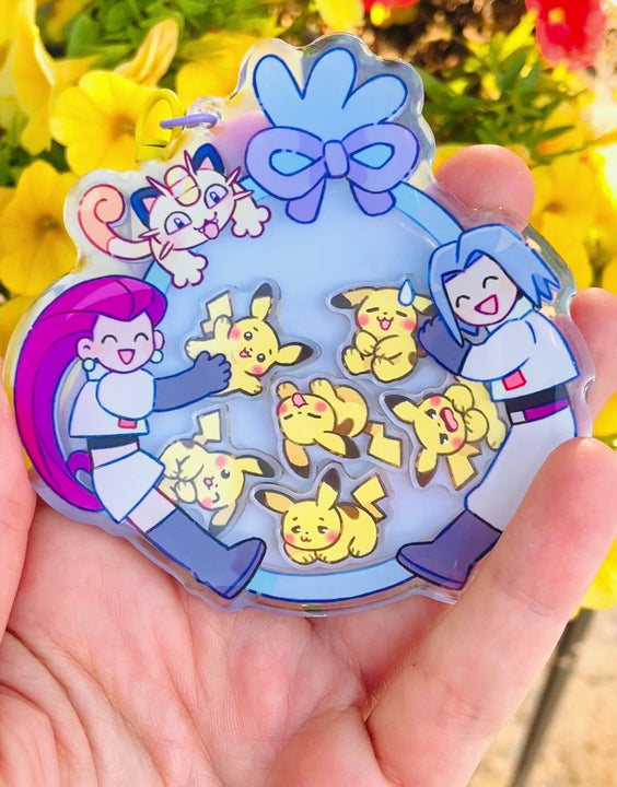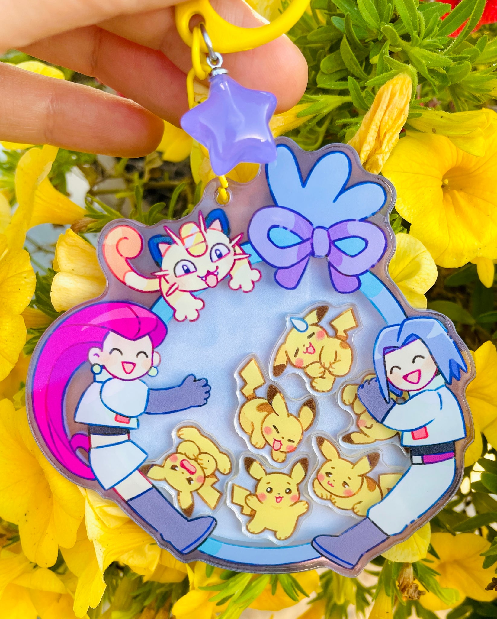 Acrylic charm with 6 shakers inside, approx ~3.5" in height, attached to a swivel clasp with star accessory