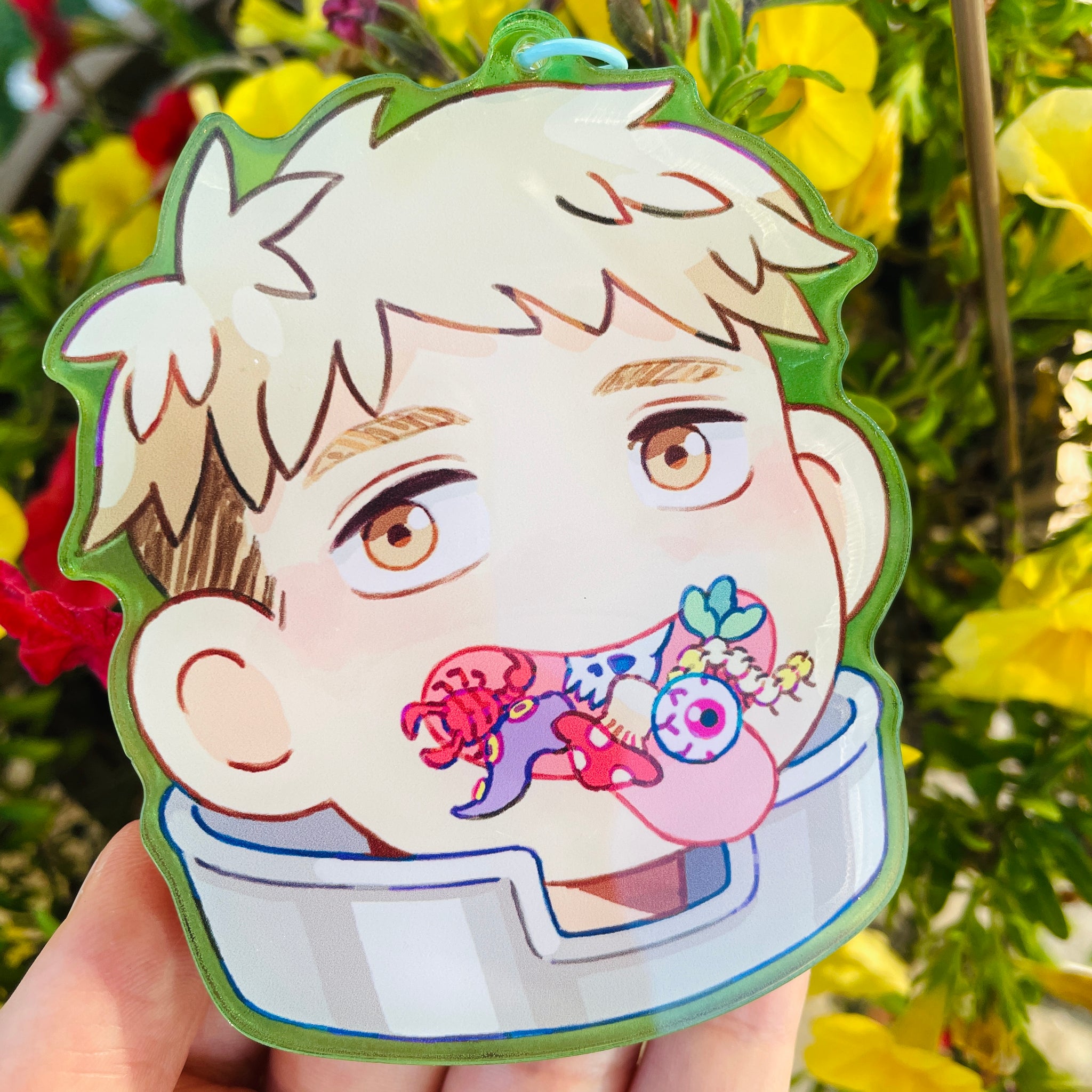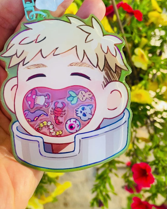 Acrylic charm with 7 shakers inside, approx ~3.5" in height, attached to a swivel clasp with star accessory