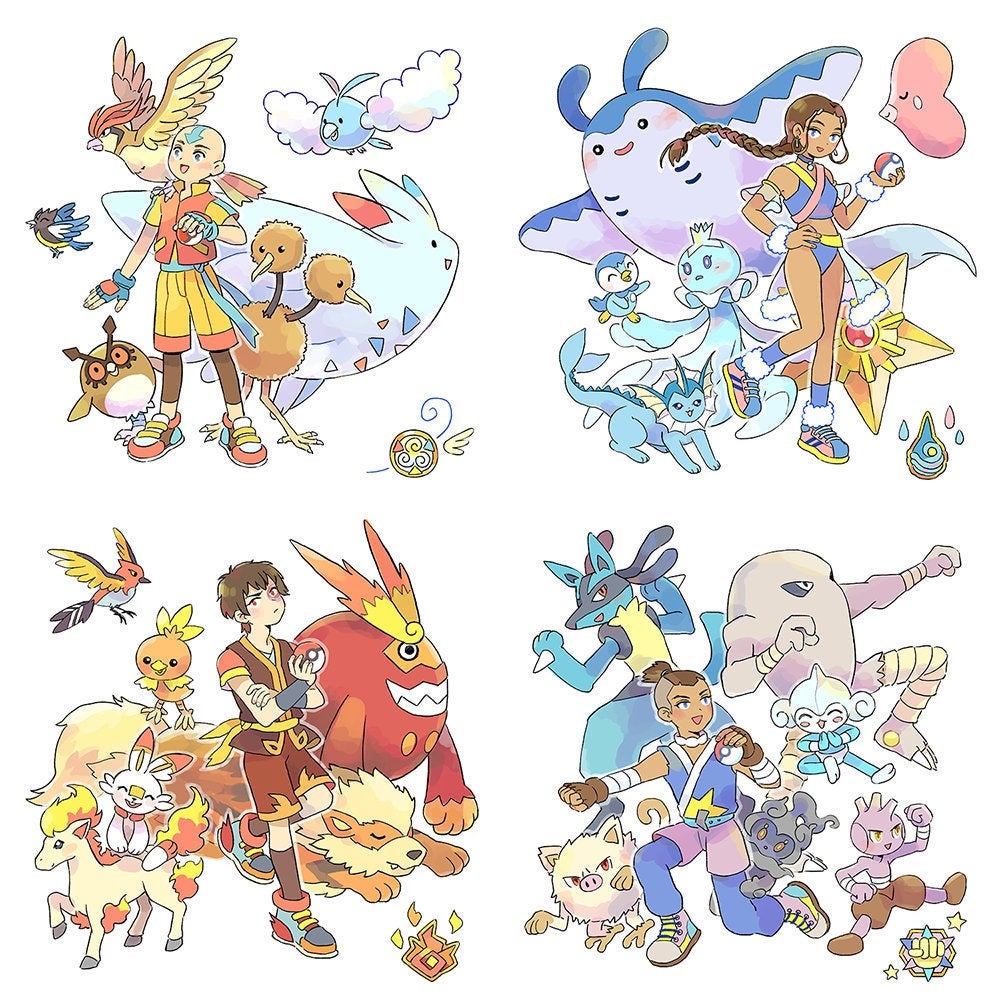 Crossover artwork of ATLA kids as gym leaders, printed on 8.5" x 8.5" light cardstock. Special: Set of 5 for $35.