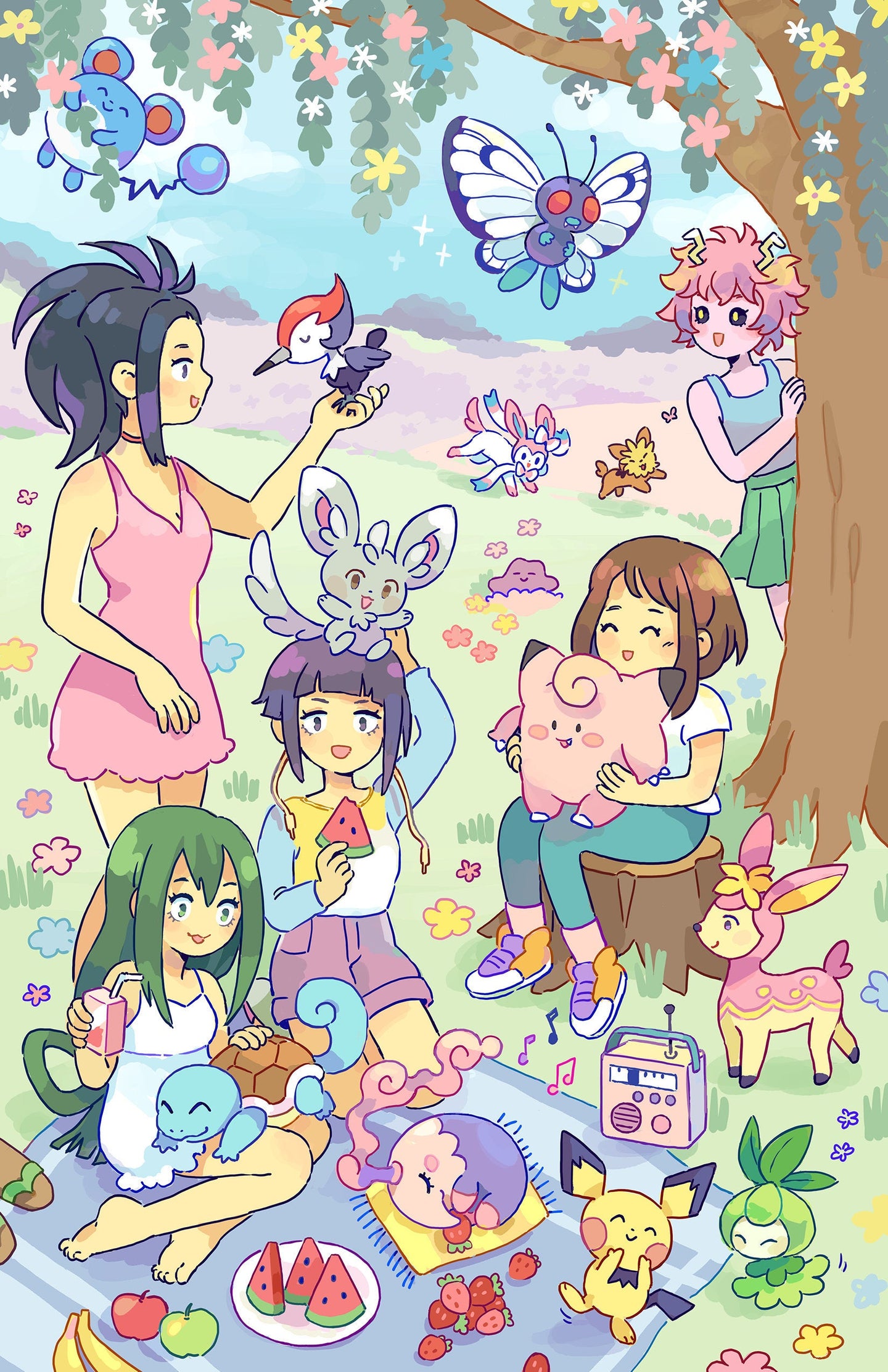 11"x17" poster of Boku no Hero Academia girls enjoying a picnic, printed on light cardstock. Orders are safely shipped in a cardboard tube.