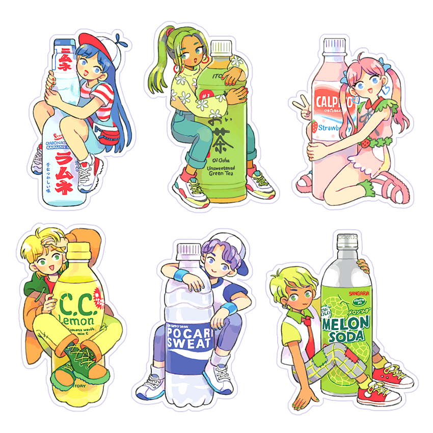 Vinyl stickers of popular Japanese drinks, waterproof, height is approx 3"