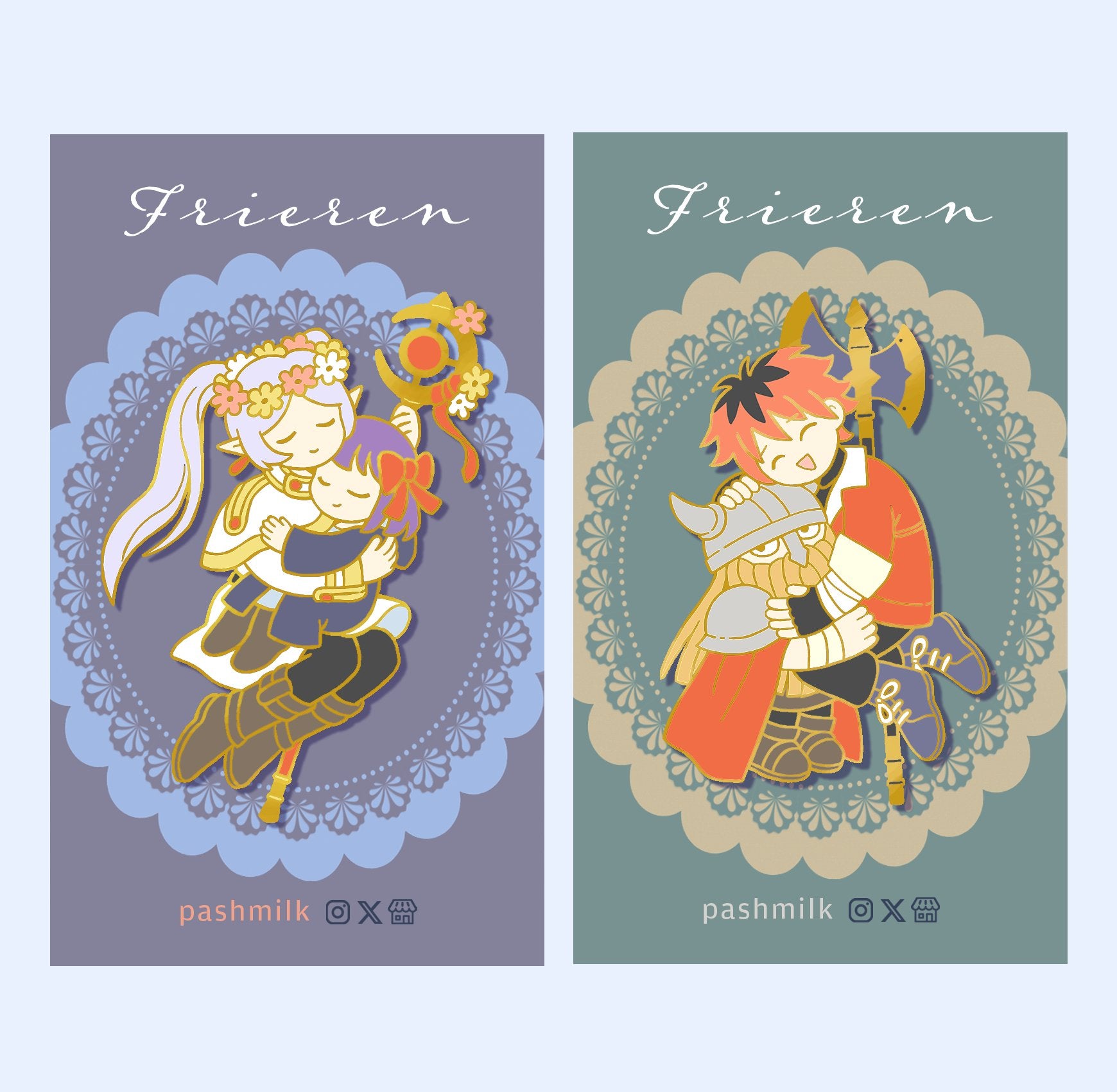 Beyond Journey's End companions. Pins have a gold plating, two rubber backings, and are approx. 2.5" tall.